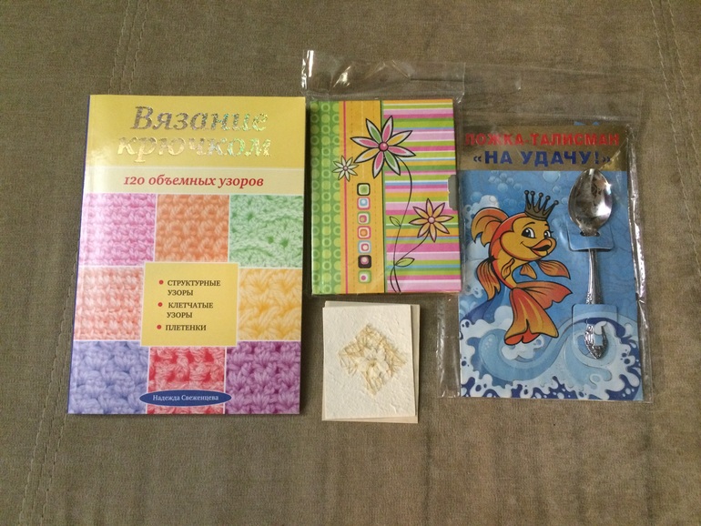 Книжка на 120 узоров по вязанию крючком ( не знаю как ты угадала, но мне нравиться вязать именно крючком и мой милый понял, что я теперь скуплю все нитки в магазине и буду творить