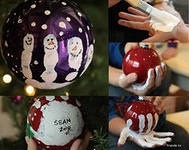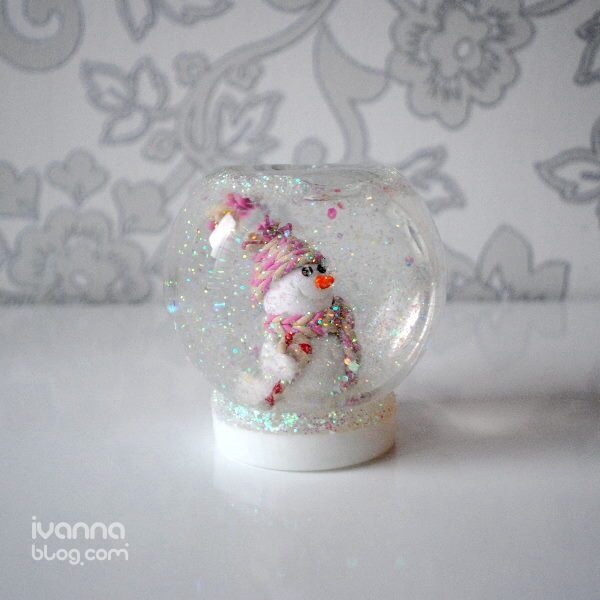 На политру выкладываем немного белой краски, губкой промокаем краску и наносим на шарик. На губке должна всегда быть краска, тогда получается как снежный налет на шарике.