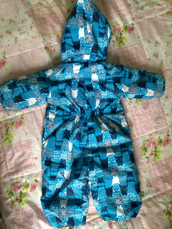 Дд! Зима. Утеплитель синтепон, водоотталкивающая ткань, размер 80. Мы носили начиная с 11 мес и летом в 1,5 года мерила было как раз, сейчас нам 2- мало. Длина по спинке 70; шаговый 22-23. Рукав от шеи 30; внутр шов рукава 20. Территориально город Владимир