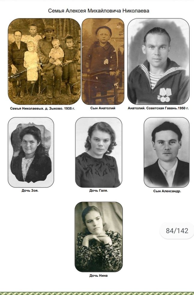 Семья была большая, отец Николаев Алексей Михайлович, мать Ксения Васильевна и 5 детей: Анатолий, Зоя, Нина, Галина и Александр.