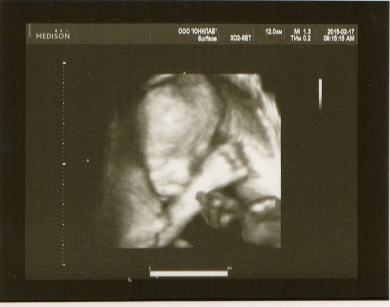 С малышкой все в порядке. Все параметры соответствуют сроку 22 недели. Предполагаемая масса плода 427г. Окружность головы 180мм. Плацента по передней стенке, больше слева, на 79мм выше внутреннего зева. Никаких патологий и отклонений не обнаружено. Отдельно озвучили, что нет "волчьей пасти" и "заячьей губы". Сначала Наталья Юрьевна не смогла увидеть пол, т.к. малыш лежал в неудобном положении, еще и прижав обе ручки к лицу. Оставили это дело на потом, под конец детка начала дрыгаться и поменяла положение. И Н.Ю. говорит вдруг: "Я вам не говорила, что у вас девочка?" Отвечаю: "Предположили в 12 недель." Н.Ю.: "А теперь 500% говорю вам - девочка!" Аааааа, как здорово!!!! Но, блин, сидит красавица наша на попе(тазовое предлежание). Конечно, времени еще вагон, надеюсь, перевернется правильно. Наталья Юрьевна очень подробно все рассказала-показала, даже в включала несколько раз режим 4D. Это что-то! Так здорово было видеть объемную картинку, личико нашей доченьки... Сделали несколько снимков, самые удачные нам распечатали. Мы такие радостные вышли из медцентра, не описать, учитывая, как сильно я волновалась перед узи... Боялась, что что-нибудь не так будет.
