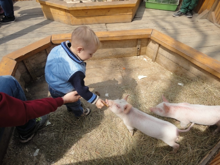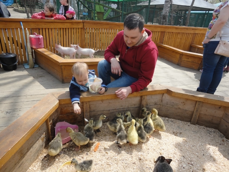 В зоопарке. Чуть не писал кипятком от общения с разными зверями))