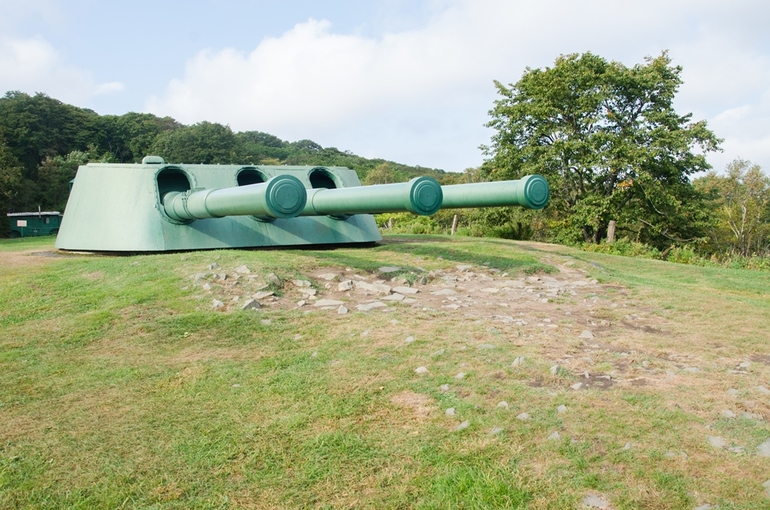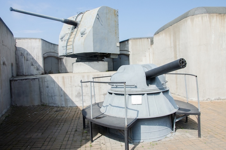 Батарею практически не вино с моря. Да и хитрость ее в том, что расположена боевые орудия располагаются в котловине между сопками, а наведение орудий осуществлялось с командных пунктов.