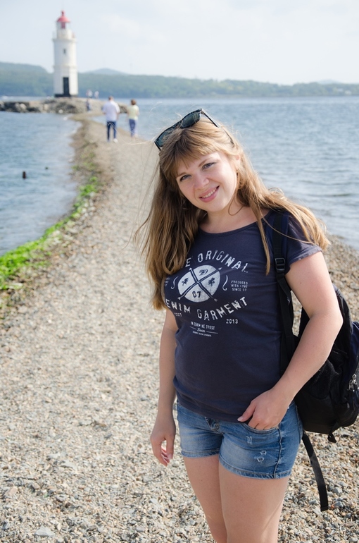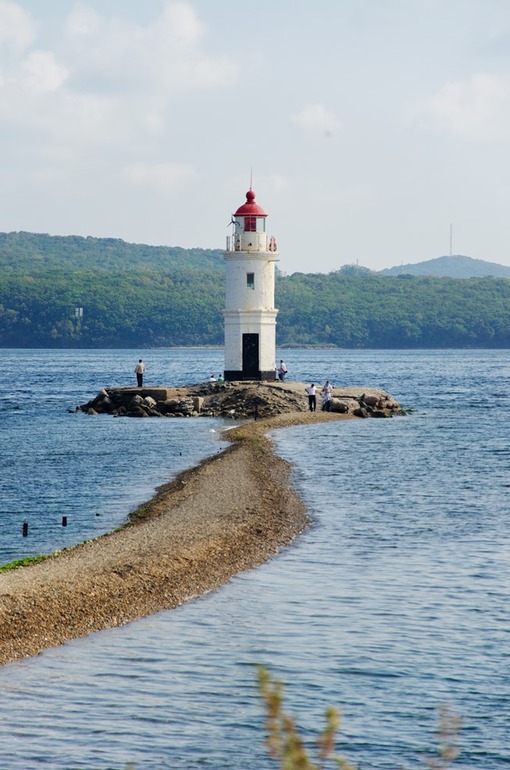 Маяк на тонкой каменистой Токаревской кошке - одна из визитных карточек Владивостока. Это символическая точка "начала Тихого океана"... Кошка в навигации - это песчаная мель, расположенная параллельно берегу и обсыхающая во время отлива.