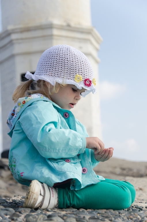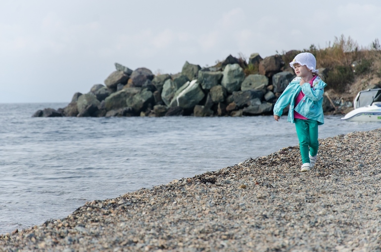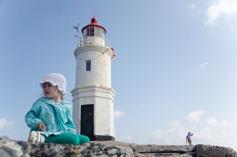 Проходя по узкой полосе земли, мы ненароком стали "жертвами" проплывающего мимо катера... В последний момент успела подхватить Настю на руки и высок подпрыгнуть в надежде не замочить ноги. Наивная))) Но до маяка мы все-таки добрались!