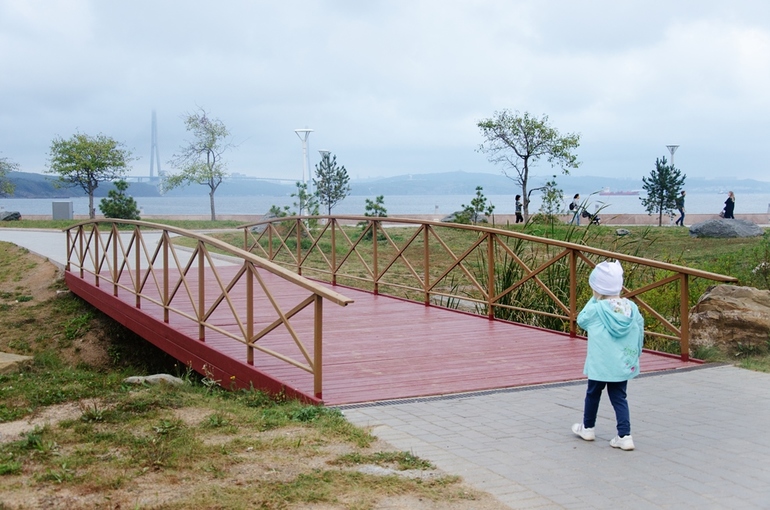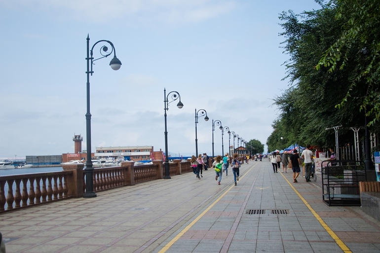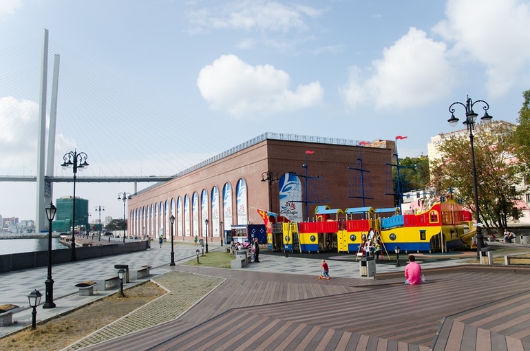 Во Владивостоке аж 3 набережных + еще одна на острове Русский. Считается, что набережная Спортивной гавани не обладает чем-то выдающимся - на ней много аттракционов, а также на ней находится Владивостокская крепость. Тем не менее эта набережная - одно из любимых мест для прогулок владивостокцев. Впрочем прогулки у моря местные жители называют менее романтично - "прошвырнуться по набке". А еще очень-очень милый памятник амурским тигрятам. Настя долго крутилась вокруг них, гладила, видела, обнимала :))