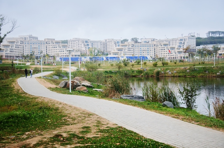 Хоть снова в студентки)) Все, что хочешь для студенческой жизни! Современные корпуса и общежития, спортивные площадки, набережная (!), море (!), куча укромных местечек, чтобы провести время в одиночестве вдвоем, искусственные водопады, дорожки для пробежек и много всяких мулек.. В общем, что-то на грани фантастики!