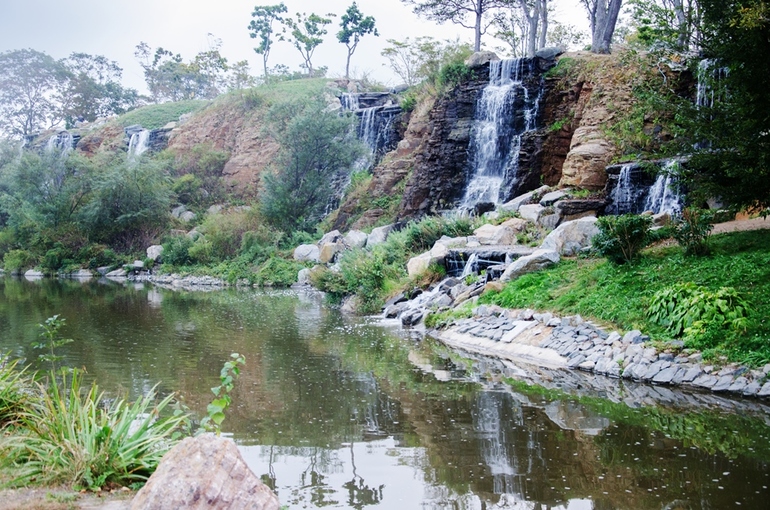Еще одно красивое место - искусственный водопад на набережной. Почему-то вечером фотки там просто отказывались получаться(( Все, что удалось выжать..