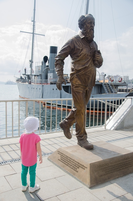 Рядом с кораблем бодро "шагает" Солженицын.