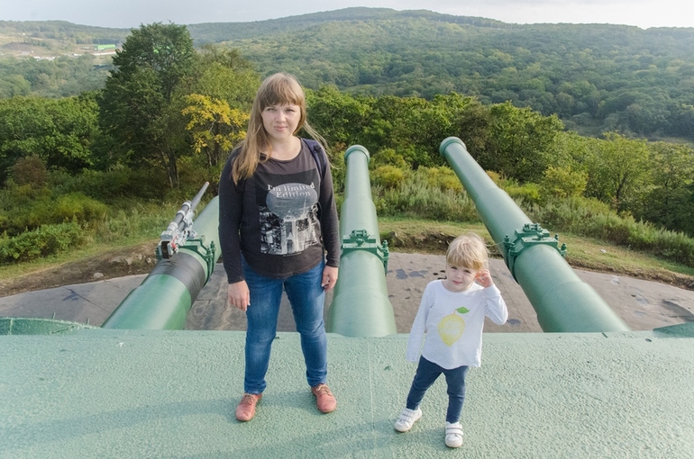 Ворошиловская батарея была создана в 30-х годах ХХ века в связи с угрозой японского вторжения. Механизм поистине уникальный и мощнейший. Подобное место мы посещали в Севастополе - 35 береговую батарею - место героическое с безграничной трагедией. Прогуливаясь там по коридорам военного "подземного линкора" мы только силой воображения могли представить, как была устроена батарея. Потому что от нее мало что осталось. В Ворошиловской батарее же наоборот все сохранилось - и над землей, и что еще более интересно посмотреть - под землей.