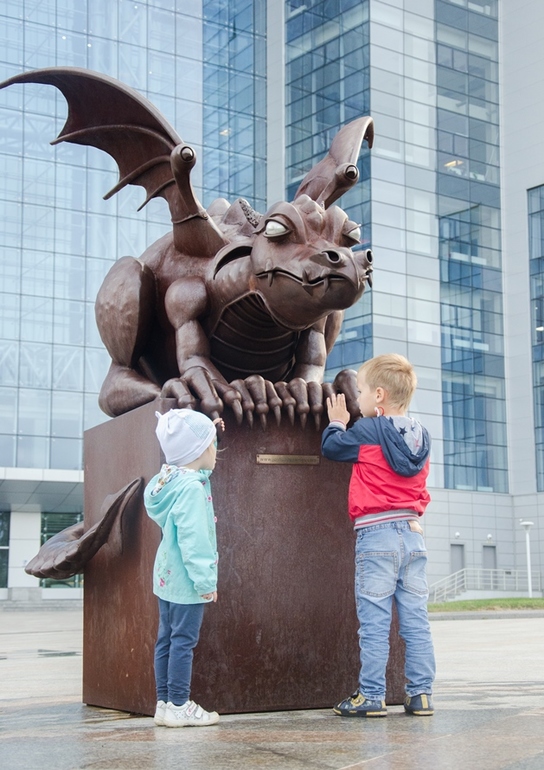 Дракон - символический "охранник" ДВФУ. Настя сказала мальчику, что это ее дракон. Мальчик пошел жаловаться маме))