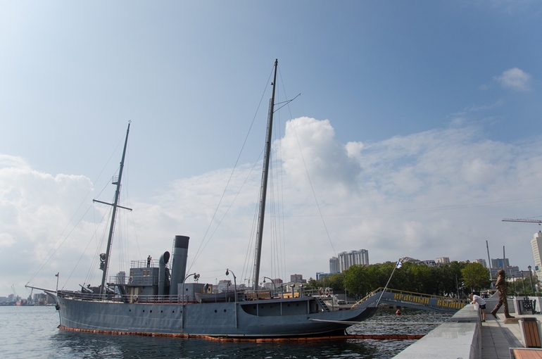 А также можно увидеть множество экспонатов музея Тихоокеанского флота, например корабль "Красный вымпел".