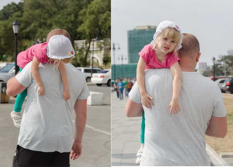 Набегавшись по набережной, Настя решила поехать до машины на папе...