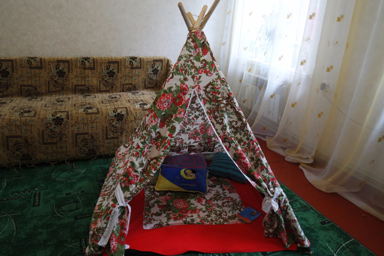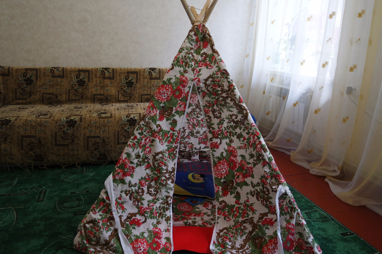 Створки не совсем закрываются, нужно пришить липкую ленту или завязки, хотя пока дети не изъявляли желания там закрыться.