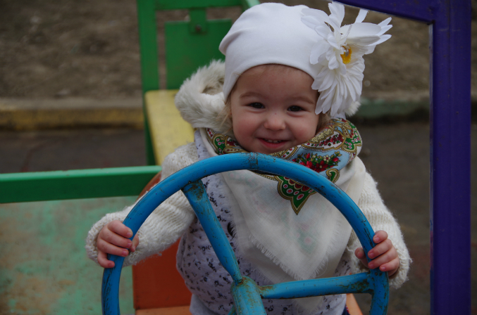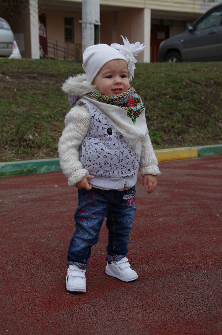 Виктория - суперкрасотка:-) очень обаятельная! где такую красивую шапулю с цветком покупали? тоже хотим:-)