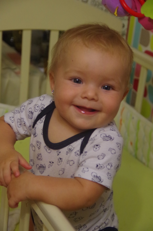 Физическое развитие - стала ползать на четвереньках как молния )) Ползает по всей квартире. Встает везде у любой опоры, ходит вдоль опоры пару шагов.