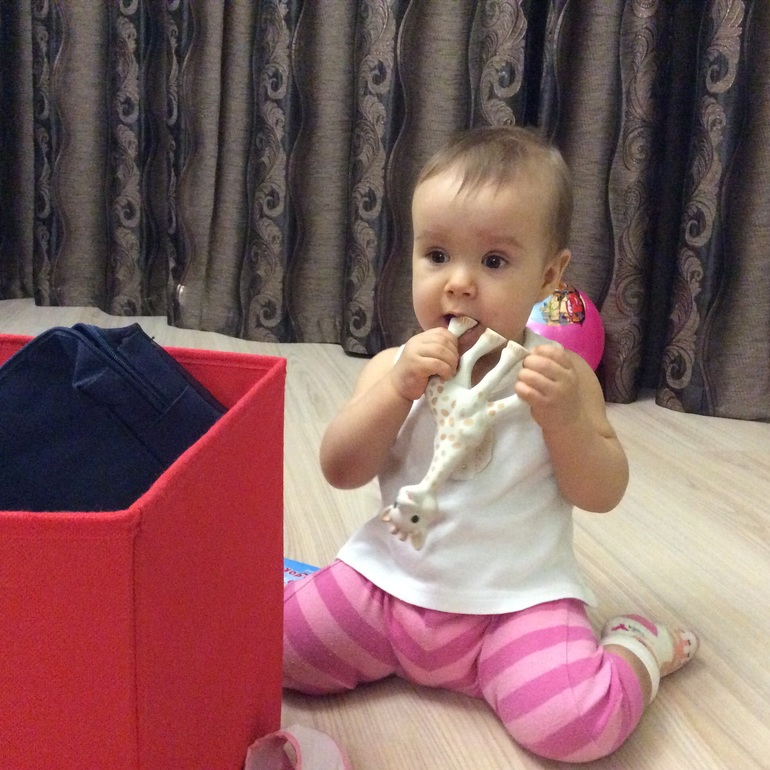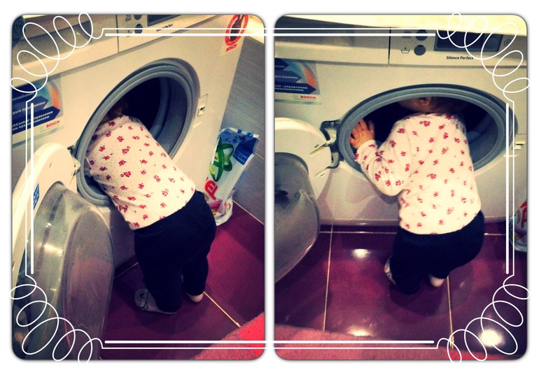 Новый прикол))))) пока я вешала белье Викуся нашла себе развлечение))