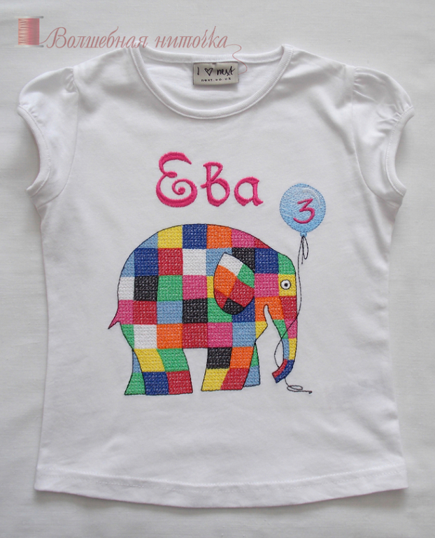 Вот такая футболка получилась для маленькой любительницы слона Элмера....