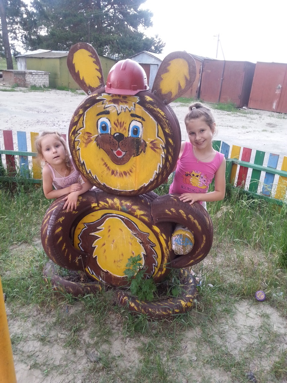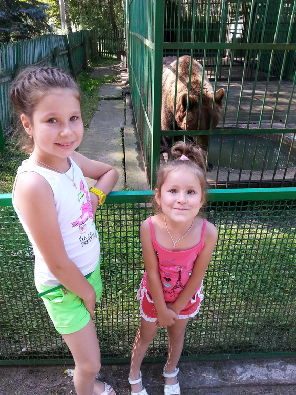 Для смены обстановки были в Орле. Ну и , конечно, в Орловском полесье. Ника была в восторге от животных, Вета отнеслась к ним .... она уже большая ...