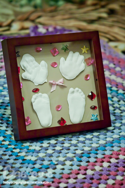 Отпечатки делали в 3,5 месяца, когда дочка спала))) Камушки покупала отдельно) Вроде получилось хорошо)