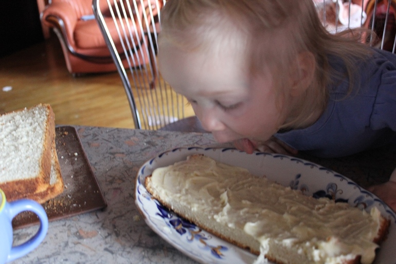 А теперь дайте тортику постоять хотя бы пару часов. А в идеале - ночь. И он будет идеальным. Мы пробовали по маленькому кусочку через три часа и был суховат бисквит в центре. Через десять часов торт был идеально влажным и пропитанным по всей толщине, так что мой шуточный рецепт лучше не повторять буквально и планировать готовку так, чтобы у вас вылежался день бисквит, а ночь выстоялся торт. Ну или наоборот.