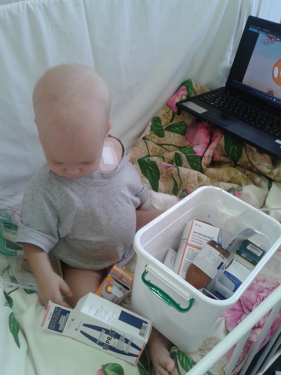Наш путь к полному выздоровлению!Вчера нам удалили центральный катетер и поставили перифирический на кисть левой руки.Катетер нам сейчас необходим,т.к Ульяше постоянно льют глюкозу,физ.раствор и каждые 12 часов антибиотики.Температура у Ульяны вчера взбесилась,то ли у градусникп крыша уже поехала,то ли у меня со зрением проблемы.Короче,измеряю дочке вчера температуру в 18.00 под левой подмышкой (с этой стороны стоял центр.катетер и стоит временный) градусник показывает 38.0,через полчаса измеряю под правой-37,5.Охо-хо,с ума меня сведет эта температура.Сегодня выше 37,2 не поднималась (ттт).