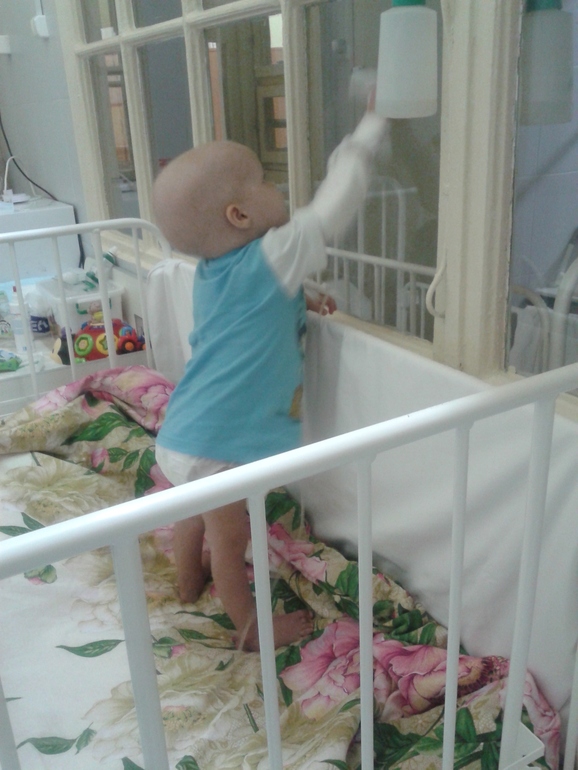 Обратите внимание,что на последней фотографии катетер уже стоит на правой руке и на сгибе.Чего только она сегодня не делала с временным катетером на левой руке:и вокруг шеи капельницу наматывала и кусала ее,потом нашла забаву просто дергать рукой с катетером.Естественно после таких забав,что-то она там повредила и пришлось вечером переставлять катетер.Веночку на кисти правой руки не нашли и поставили повыше.Ох,и кричала Ульяна,но думаете ее это чему-то научило?Ага,как же!Опять творит с этой капельницей чёрти что.Сейчас опять с умным видом играет с лекарствами)))