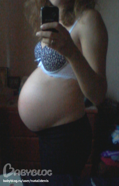 ... Ну и фоточки для сравнения: на втором фото я на 40 неделе с доцей, на первом - мои 34 второй беременности....Sorry за качество фото...