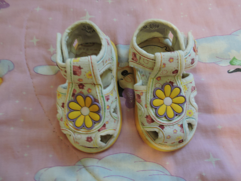 №7 Удобные текстильные сандалики на малышку, с супинатором. "Совенок". 15 размер (11 см по стельке). Если ребенок сильно топнет или побежит - пищат, как резиновые игрушки. Без пятен и потертостей. 100 рублей.