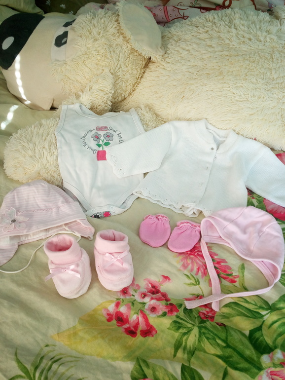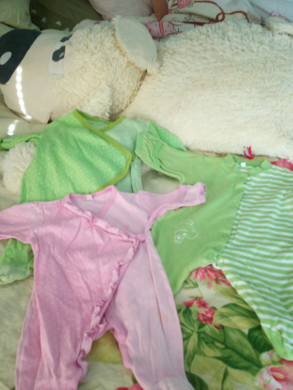 Коляска, кроватка, качелька куплены еще в феврале после 2 скрининга. Подгузники 0 и 1 размера тоже закуплены. Достаю и перетрясаю баулы с одеждой. На перввй месяц отложила, остальное рассортировала по месяцам и убрала пока.