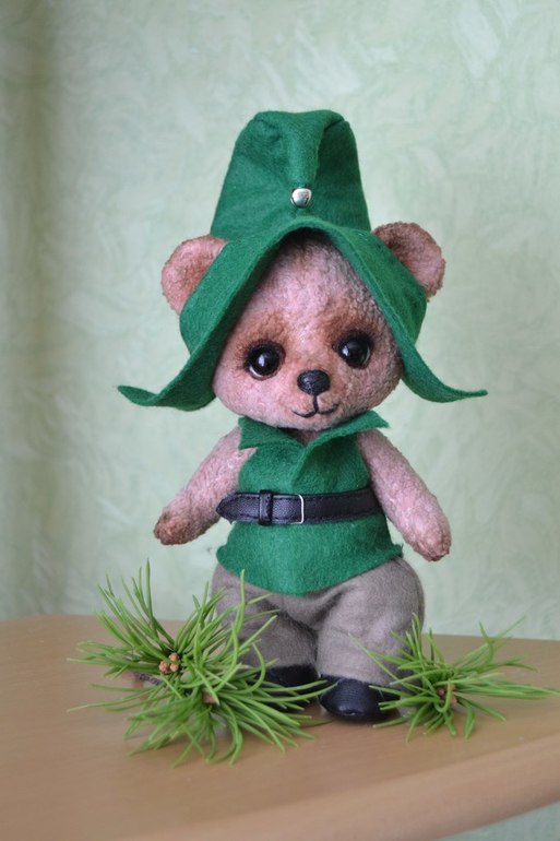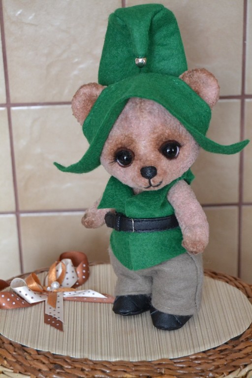 Мои малышиМишутка сшит в технике Тедди. Рост 16см. Сшит из очень старенького плюша, без блеска. Все конечности подвижны, голова на двойном шплинте. Имеет живой вес, за счет мет. гранулята в лапках и пузике. Глазки стеклянные, немецкие. Одежка сшита из фетра разной толщины, ботиночки кож.зам.