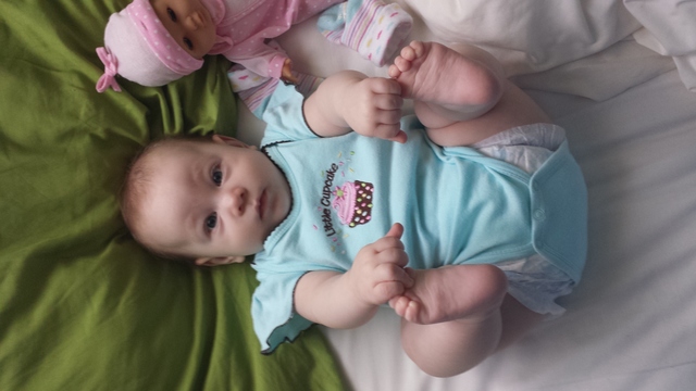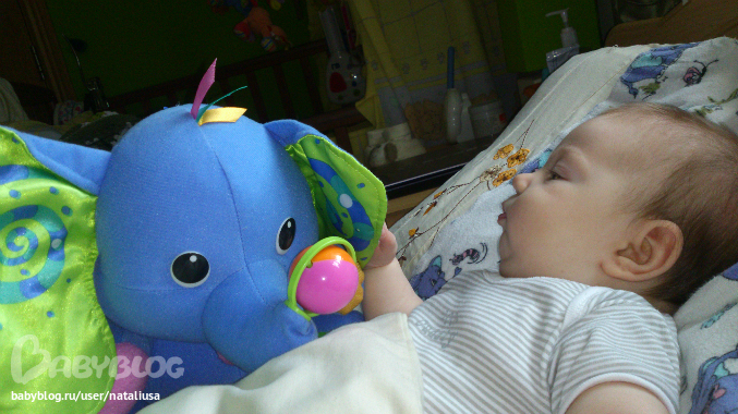 Ну вот, сижу с утра с одним глазом открытым , а втотой еще спит. Левая рука завтракает, а правая печатает. Теперь пишу всегда и везде дневник Александры, чтобы не забывать о ее знаменательных проделках. Вчера мы научились намеренно кидать играшку. Когда игрушка упала первый раз я подумала случайнно. Подала. Через две секунды, но она опять выпала. Подала. Итак продалжалось около 10 раз. И вдруг Александра решила , что это скучно и разнообразила сие действо облизыванием игрушки. В результате вышло так: взяла, облизала и бросила.