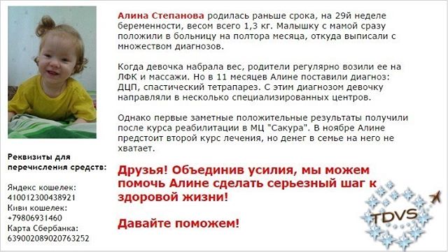 Свою помощь (кто сколько может) вы сможете перечислить на: