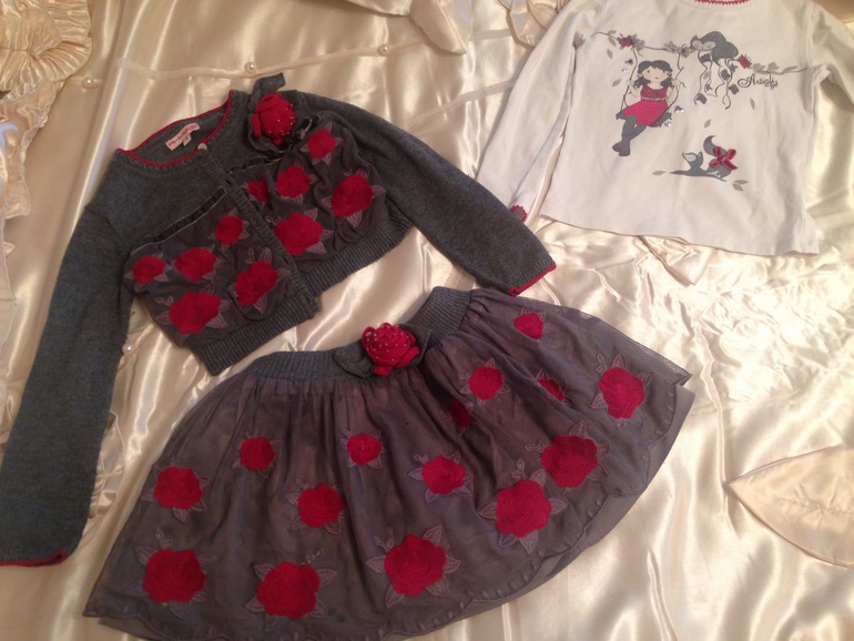 Юбка 3 года, можно носить и раньше, болеро с добавление шерсти (есть микро катышки) размер 4 года, можно носить и раньше