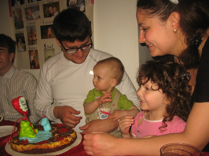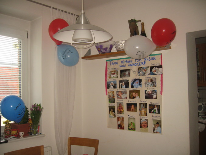 Уже целый год я наслаждаюсь сыном,своим чудом, своим сокровищем,чудо мальчик из моих снов,тихий,спокойный ,умный,милый. Сначала мы рисовали с мужем доченьку,она растёт такой какую мы хотели,кудрявая,смешная,весёлая,шумная малышка. Она обожает братика!!!!!!!!!! Потом нарисовали тебя,сыночек. Больше всего в жизни,я хочу,чтобы вы всегда были счастливы мои детки родные. Наш папа по традиции купил барана,мы делали манты с бараниной,торт ,шарики и отмечали первый день рождения нашего сына!!!!!!!