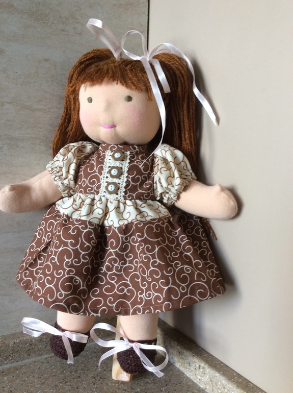 Вот такая куколка в шоколадном платьице сшилась у меня и уехала вместе со своей сестренкой в розовом к двум девочкам-сестренкам.