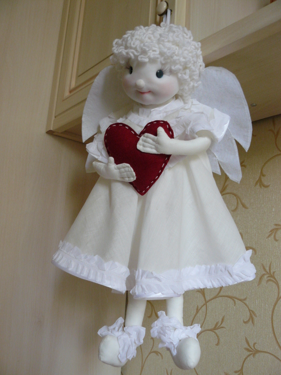Вот такой ангелёнок сшился мною и уехал по обмену ангелочками. И повёз с собой большое полное любви сердце :-)))