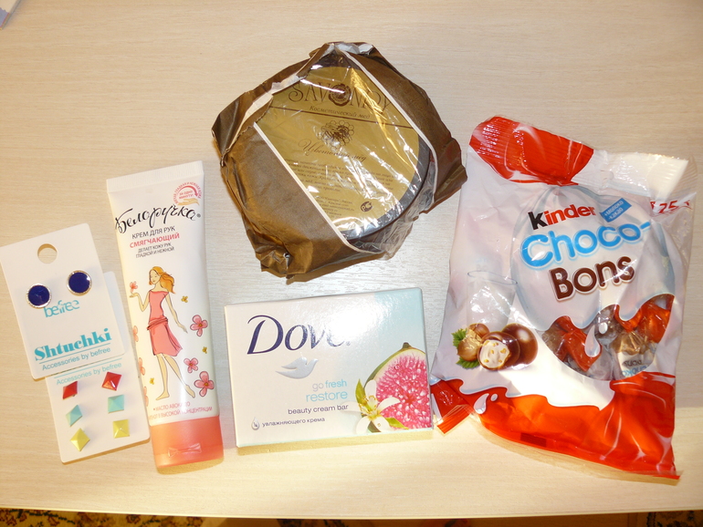 . Вот такие сережки, конфетки, крем для рук, мыло и кометический цветочный мед. Я вообще первый раз такую штуку вижу. Буду пробовать! Спасибо!