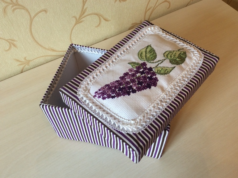 вот такую коробочку для рукодельных хомячеств или ещё чего то недавно я вышила, сшила и подарила...
