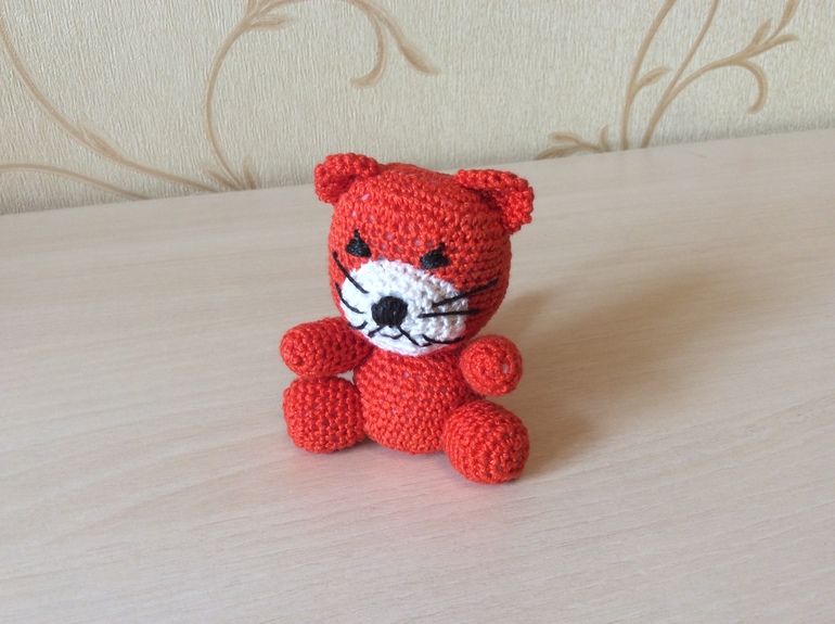 Первый раз в жизни связала игрушечку. Связана киса из ириса.