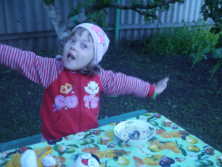 Прорыв произошёл в конце августа. Даша, отдохнув месяц от садика сильно нами всеми пресытилась и заявила, что хочет в садик! Правда первые пару дней утречком по-привычки причитала, но затем стала по утрам спокойно меня отпускать. У неё появились подружки, за которыми уже скучает. Нравятся обе воспитательницы ( с апреля у нас их сменилось 5 штук!), хорошо кушает, даже дома попросила макаронки и котлетку как в саду! Я прям прибалдела )) Год рыданий и мучение и вот оно радостное - адаптация! Выросла моя крошечка, желает самостоятельности ))