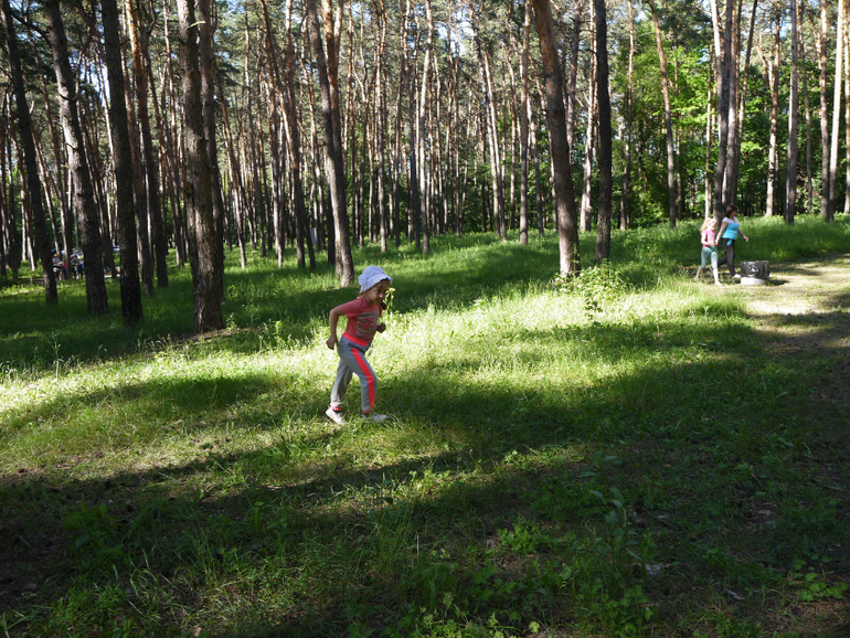 Первый плюс - мы с Дашей доехали на общественном транспорте (я предварительно нашла на карте это место). Второй плюс - хвойный лес! В хвойном лесу воздух легче и чище, так как нет большого количества слежавшейся листвы.