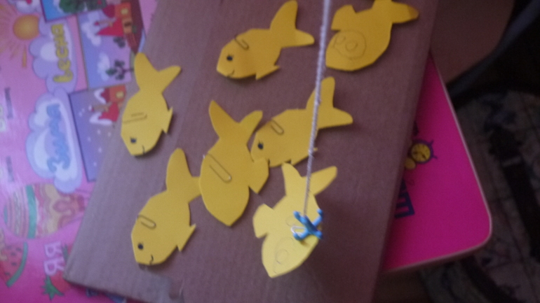 Сделали рыбок (утащила из поста Амели) Я четырём глазки нарисовала и Даша "оживила" четверых. Оказалось с такими рыбками ей интереснее, чем с теми, что в наборе ))