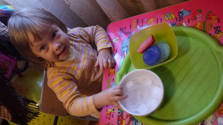 Но маме, конечно же показалось, что мы мало позанимались ))) и пошла мама "бродить" по просторам ББ, ну и конечно, наткнулась на интересное занятие. Правда мы не столь полно, как было предложено, занимались, но всё же удалось очень неплохо познакомить Дашуню с таким явлением, как "ЛЁД". Спасибо за идею Марии.