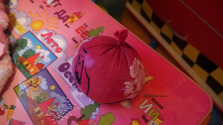 Ещё одной "жертвой" стала игрушка Маша, которую мы заморозили в воздушном шарике ))