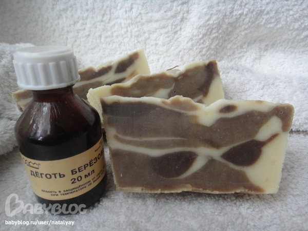 1. Дегтярное мыло ХС на настое ромашки (кокосовое масло, пальмовое, "помас", рыжиковое, ши-карите), ДЁГОТЬ БЕРЁЗОВЫЙ в след-2% - профилактическое! SF 10%.