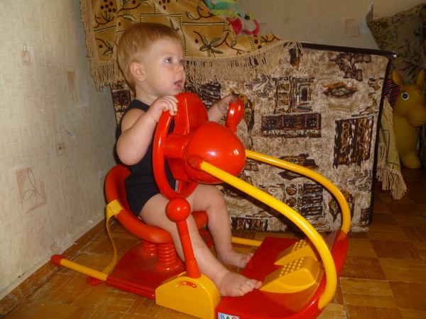 Вот, кстати, фотка. У нас попроще. Эта штуковина у родителей, не у нас, поэтому когда приезжаем в гости, Колюня, конечно, радуется, садится, "едет", но недолго)))