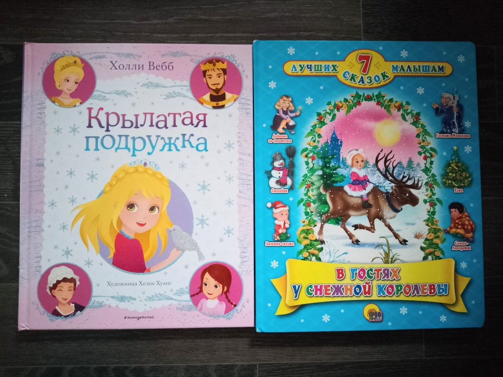 Крылатая подружка книга лёгкая но со смыслом. Можно поболтать потом, проговорить эмоции, то есть тоже когда ребёнок уже осмысливает действия. Остальные книги классика, типовой Морозко, 12 месяцев, ёлочка и прочее. Из можно читать и в малом ,и в великом)))
