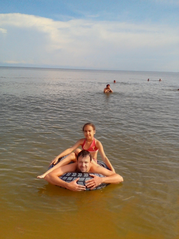 Муж с дочкой ( ст. Голубицкая, Азовское море, с чёрного фото позже будут, там я в купальнике с животом))