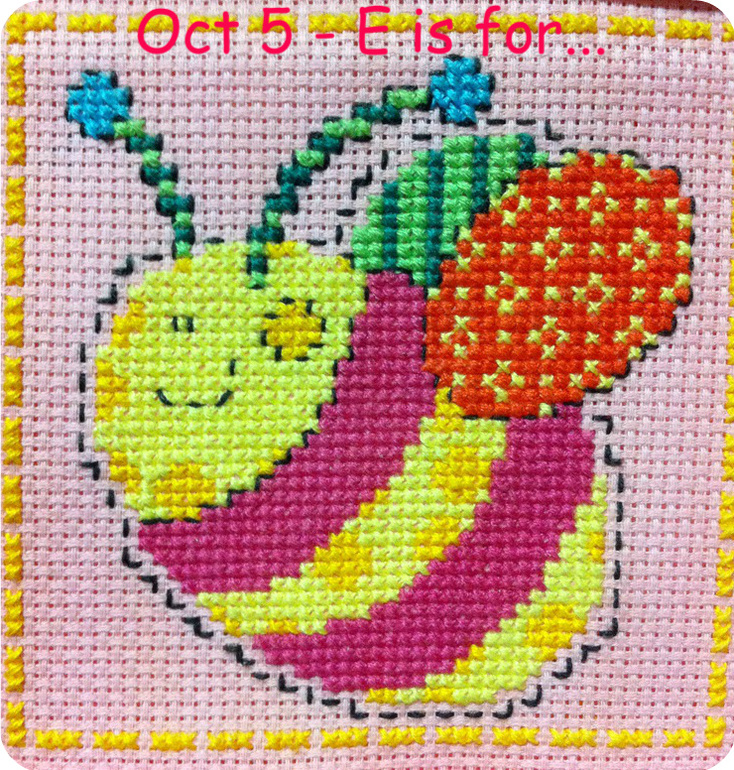 Обожаю журнал "Формула Рукоделия" за его красочные большие схемы для вышивания крестиком. В очередном выпуске увидела милое детское одеяльце, которое состояло из квадратиков с вышитыми на них картинками. Один из этих квадратиков я вышила, сделала рамочку из цветного картона и повесила у себя в комнате. Получилась отличная Пчелка)))